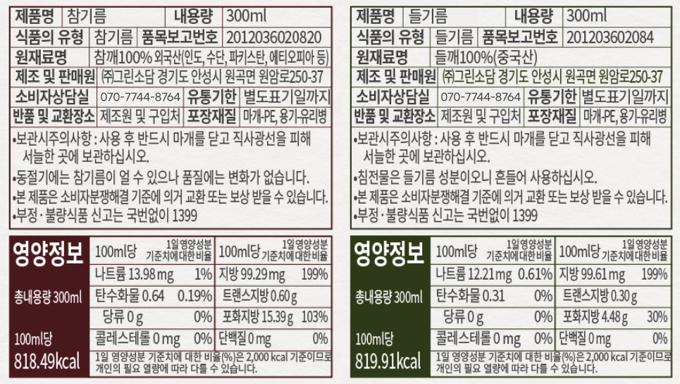 정성을 가득담은 참기름/들기름으로