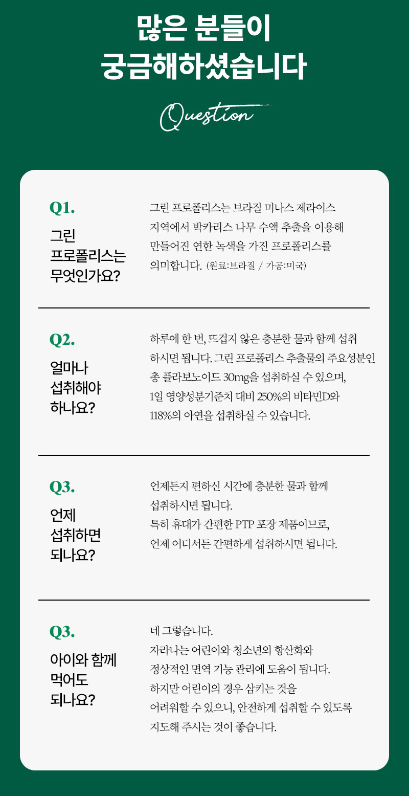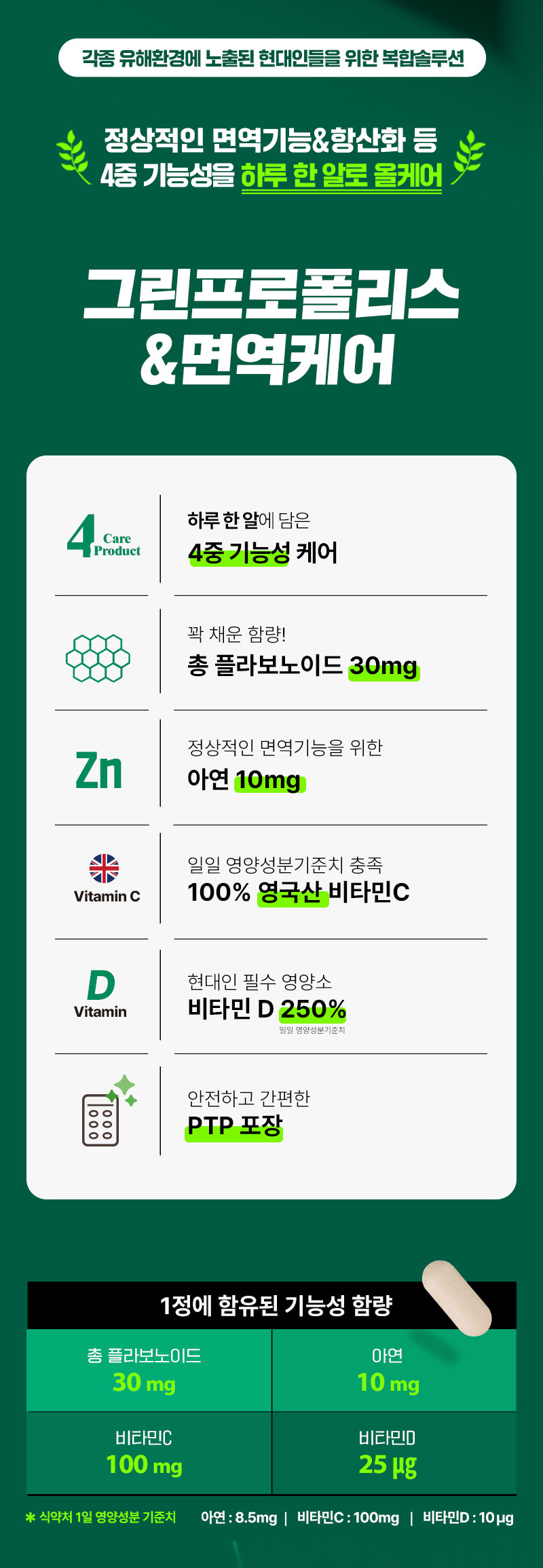 한알에 담긴 4중기능성 올케어 그린프로폴리스 면역케어